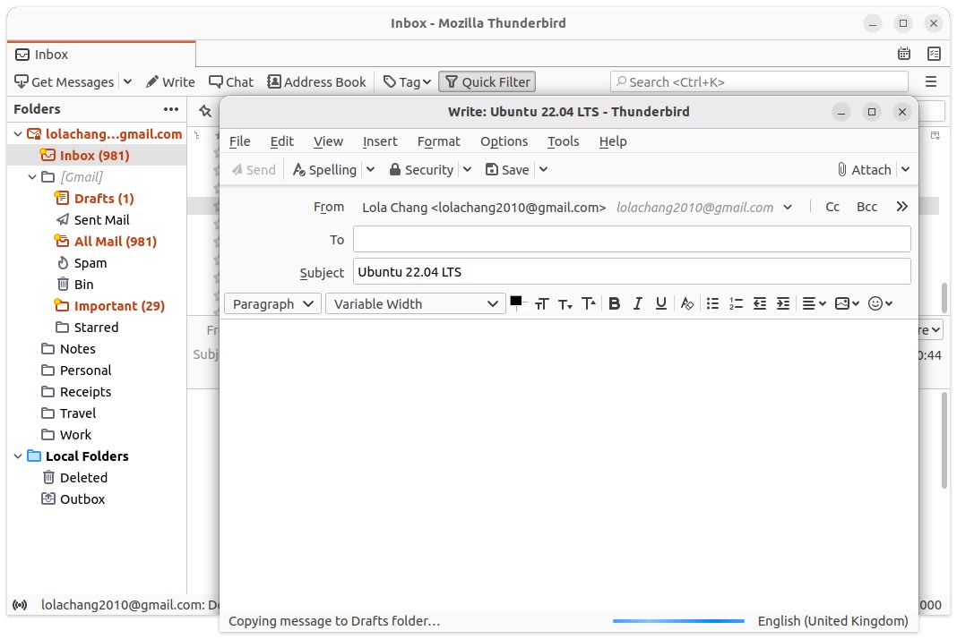 Ubuntu预装了Mozilla最受欢迎的电子邮件应用程序——Thunderbird,所以您可以快速地通过桌面访问电子邮件。无论您使用哪种电子邮件服务:Microsoft Exchange,Gmail,Hotmail,POP或IMAP都可以正常使用。