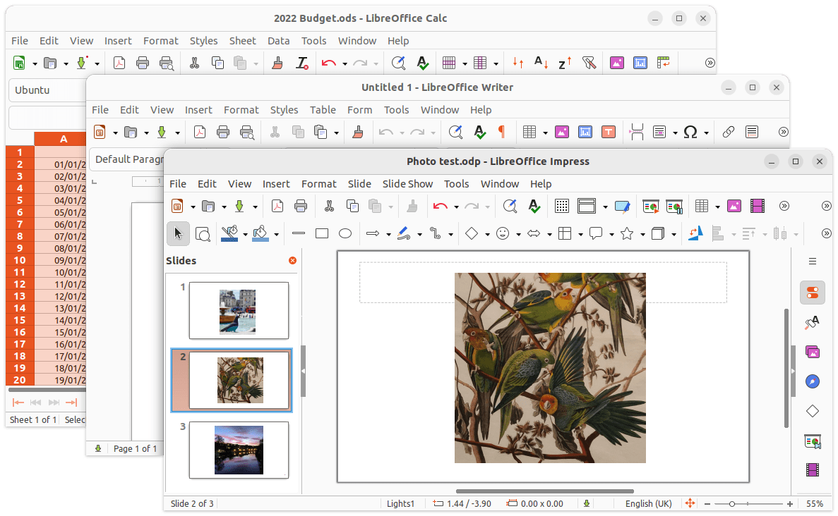 使用与微软Office兼容的开源办公套件LibreOffice在Ubuntu上创建专业文档,电子表格和演示文稿。这意味着您可以打开和编辑Word文档,Excel电子表格和幻灯片演示文稿之类的文件,并与其他用户快速,轻松地共享。您也可以直接在桌面电脑上使用Google文档。